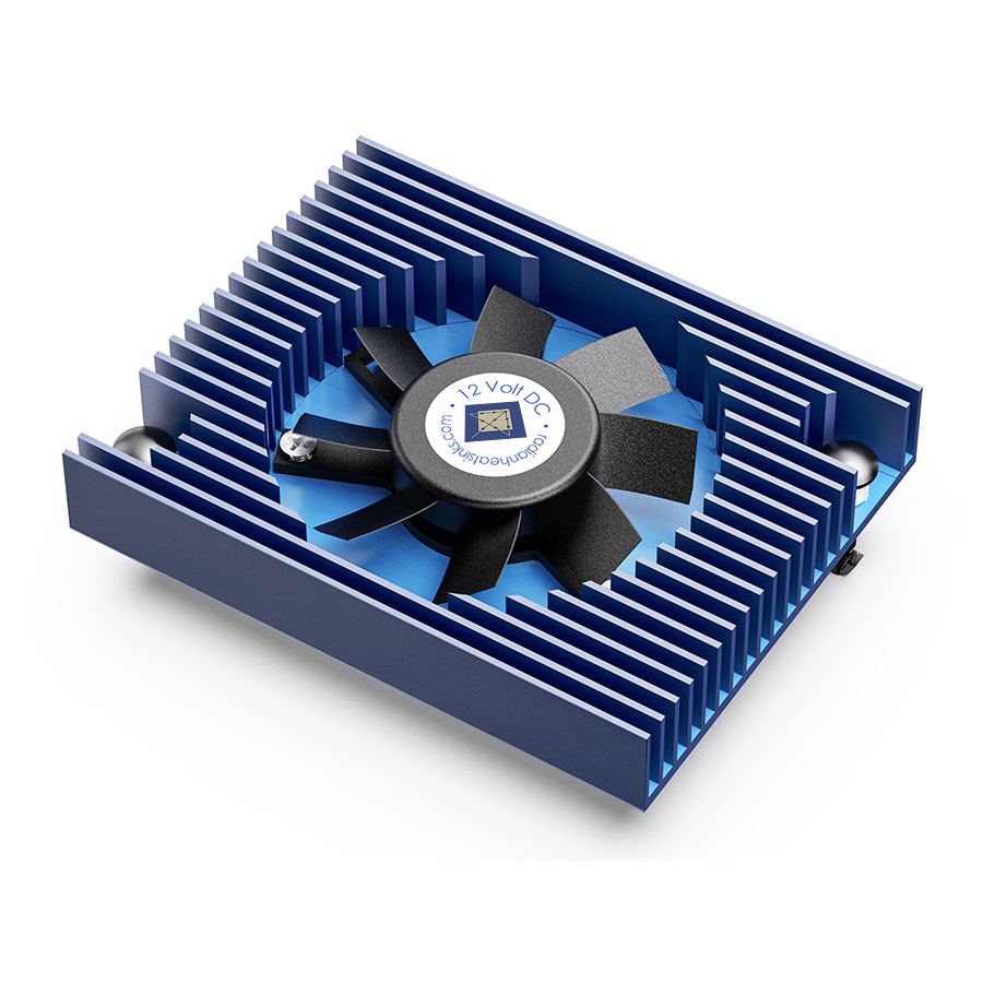 A PCIe Fansink is specifically designed for a PCI Express (Peripheral Component Interconnect Express) card. As a PCIe card has a height restriction of 14.48mm this means that fin height is fairly limited for the PCIe heatsink, especially when considering that a typical BGA chip height is around 3mm including solder balls.